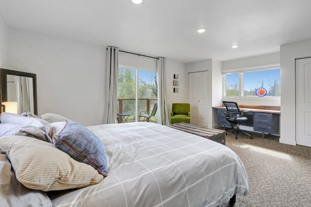 The Original Cabin at Lore can host 4 people between a queen bed in the bedroom and a queen pull out in the living room.